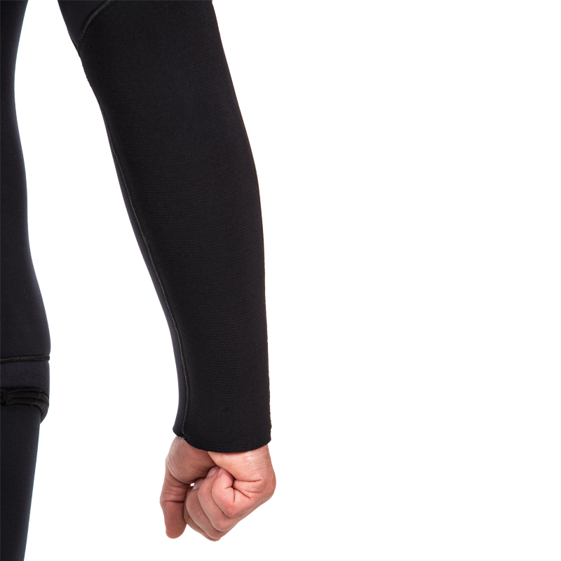 Куртка имеет крой типа реглан, который увеличивает комфорт и обеспечивает максимальное прилегание гидрокостюма. С внутренней стороны нижняя часть куртки защищена нейлоном – это позволяет надевать и снимать куртку без опасения надорвать или оставить задиры. Брюки костюма с высокой талией, без лямок. Колени и локти гидрокостюма защищены прочным к истиранию материалом Duratex. Гидрокостюм имеет «мягкие швы» благодаря проклейке специализированным неопреновым клеем. Поверхностные швы выполнены двухниточным плетением на специализированном немецком оборудовании. В гидрокостюмах толщиной 3, 5 и 7 мм все края костюма обработаны оверлоком.