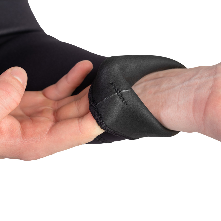 - для рукавов мы добавили удлинённые манжеты из неопрена меньшей толщины, с повышенной растяжимостью, чтобы облегание запястий было максимально плотным, а надевание и снимание куртки – ещё более комфортным. Также мы добавили на эти манжеты несколько закрепок для самостоятельной подгонки длины рукавов пользователем;