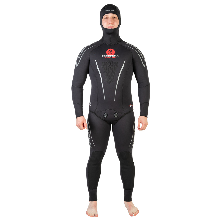 Комфорт использования Scorpena Samurai обеспечивают и материалы: неопрен Yamamoto стал эталоном, благодаря мягкости, устойчивости к износу и выдающимся теплоизоляционным качествам за счёт идеальной плотности и расположению воздушных пузырей в структуре неопрена. Для гидрокостюмов толщиной 5 мм и 7 мм использован Yamamoto No38, а для 9 мм и 10 мм – более эластичный и мягкий Yamamoto No39. Широкая размерная сетка (от S до 4XL) позволяет найти свой размер практически любому подводному охотнику.