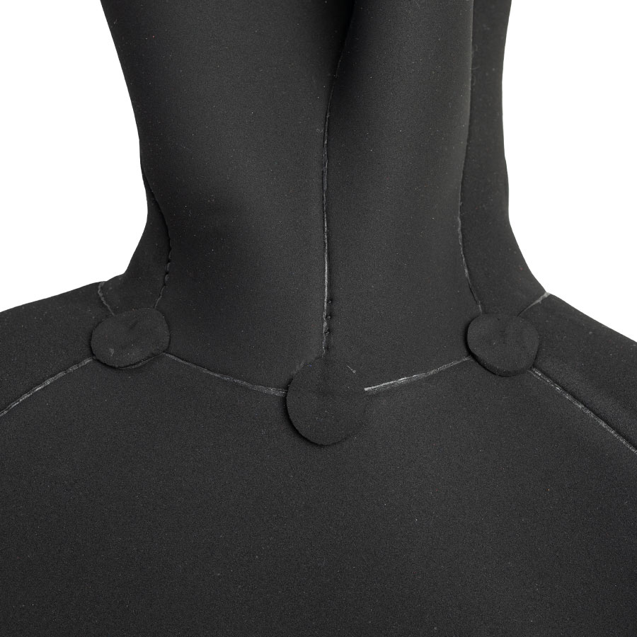 Крой капюшона куртки адаптирован для использования в холодной воде: шлем максимально закрывает лоб и подбородок, обеспечивая плотную посадку при свободе движений.