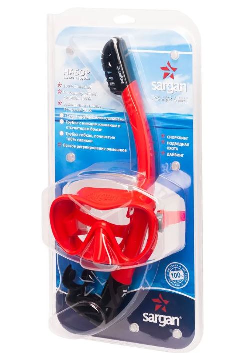 Комплект для подводного плавания от бренда SARGAN состоящий из маски и трубки Агидель. Одностекольная маска с панорамным обзором. Закаленное безопасное стекло Tempered Glass. Обтюратор и ремешок маски, загубник и гофрированный сегмент трубки изготовлены из 100% гипоаллергенного силикона. Трубка оснащена сухим верхним клапаном, который предотвращает попадание воды в трубку при погружении под воду. В нижнем сегменте трубки расположена дренажная камера с клапаном, через который вода легко удаляется из трубки. Трубка крепится на ремешок маски удобным зажимом.