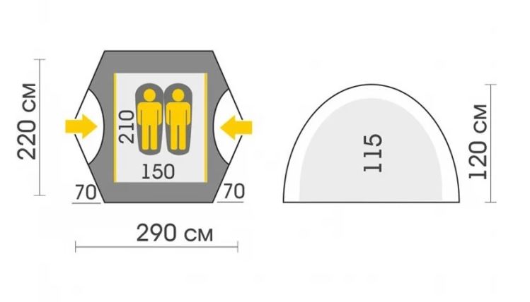 Два входа обеспечивают превосходную вентиляцию и комфортный сон в теплое время года.